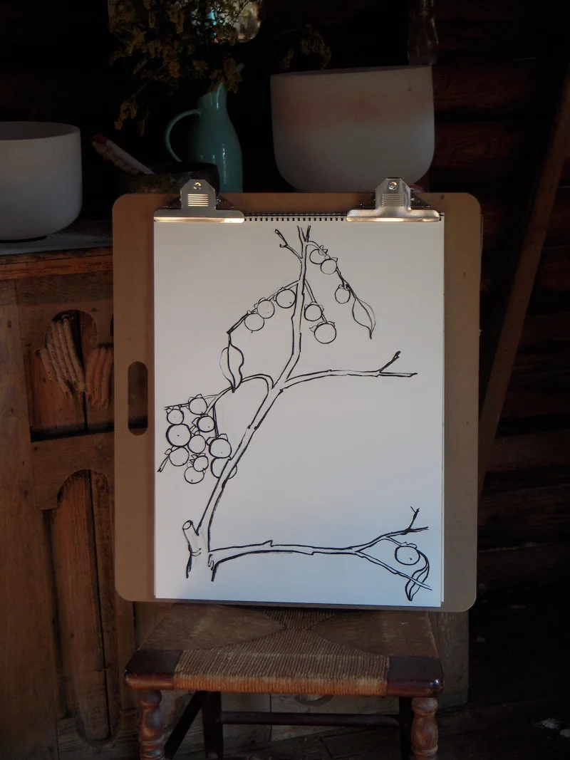 lots of persimmons around this fall. the fruit is a gorgeous, glowing orange. i’m studying them now so i can make some pokeberry plates. i’m trying to come up with a glaze that will make the persimmons glow like in real life. this weekend i plan on doing some large drawings of persimmons.
