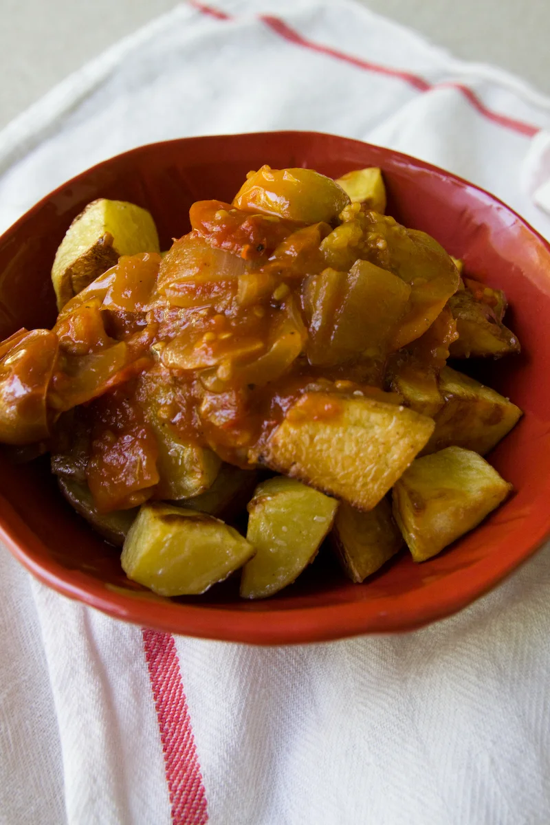 serve potatoes with sauce as a tapa or a side, enjoy!