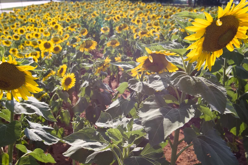 i was driving to my friends house and saw this little field of sunflowers. i wouldn't mind seeing this every day on my way to work!