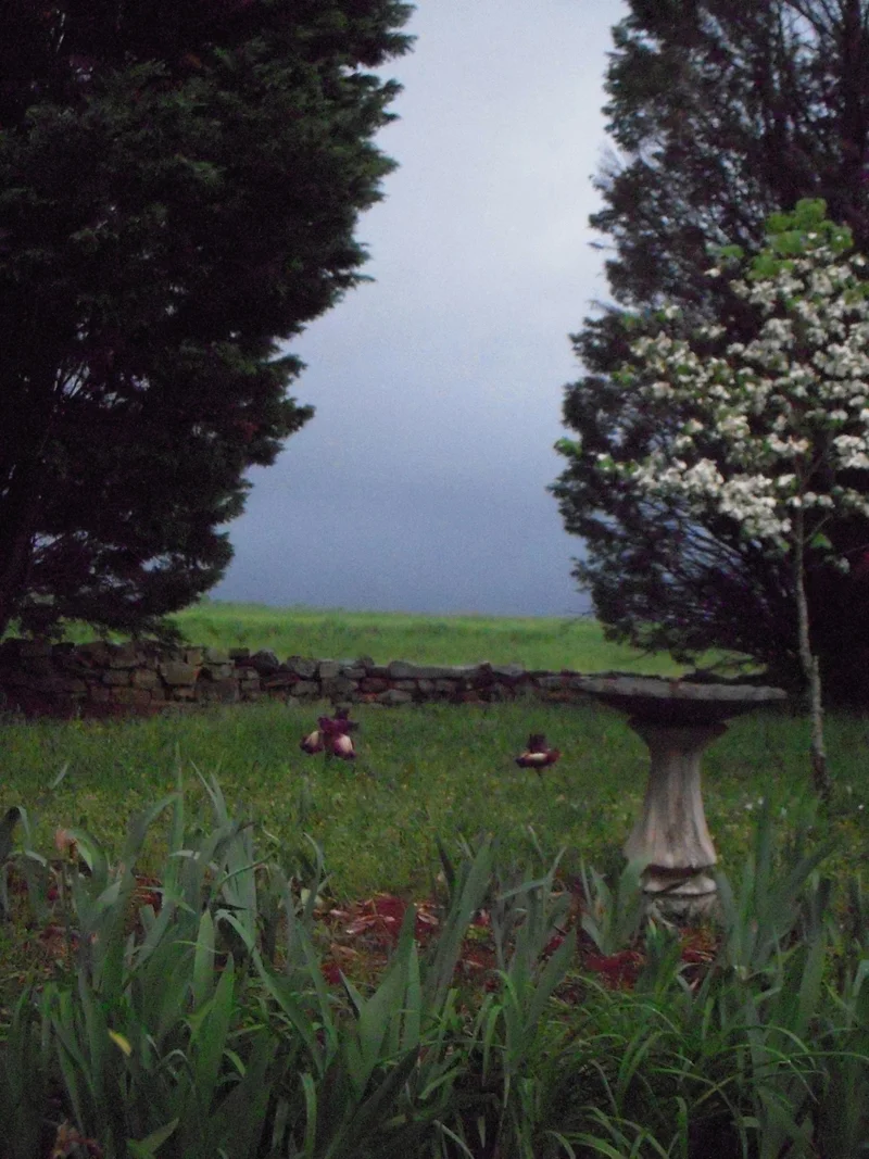 rebecca's new place is on a west facing high spot of land. from the kitchen window, you can see the blue grey clouds approaching and feel the cool breezes. more spring rain on the way!