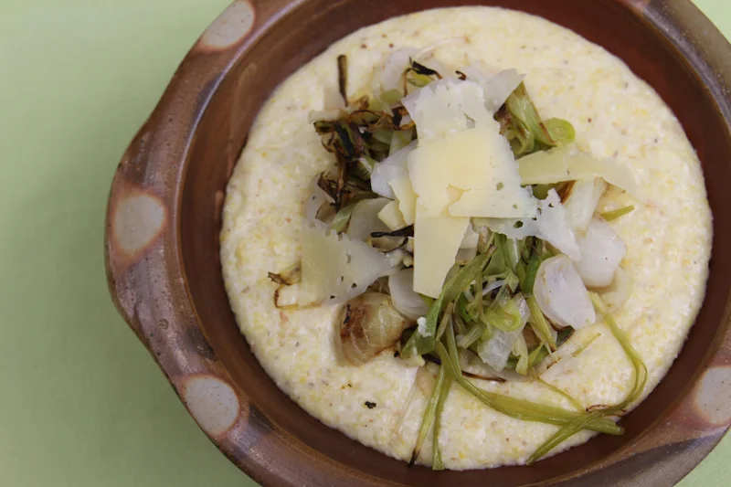 i know that edna lewis may disagree but i love creamy and cheesy grits. in athens, there is a restaurant called farm 255 that makes my favorite grits. they put sauteed local mushrooms on top with some shaved parmesan and a broth. whenever the weather starts to get cool, my mouth starts to water thinking about them.